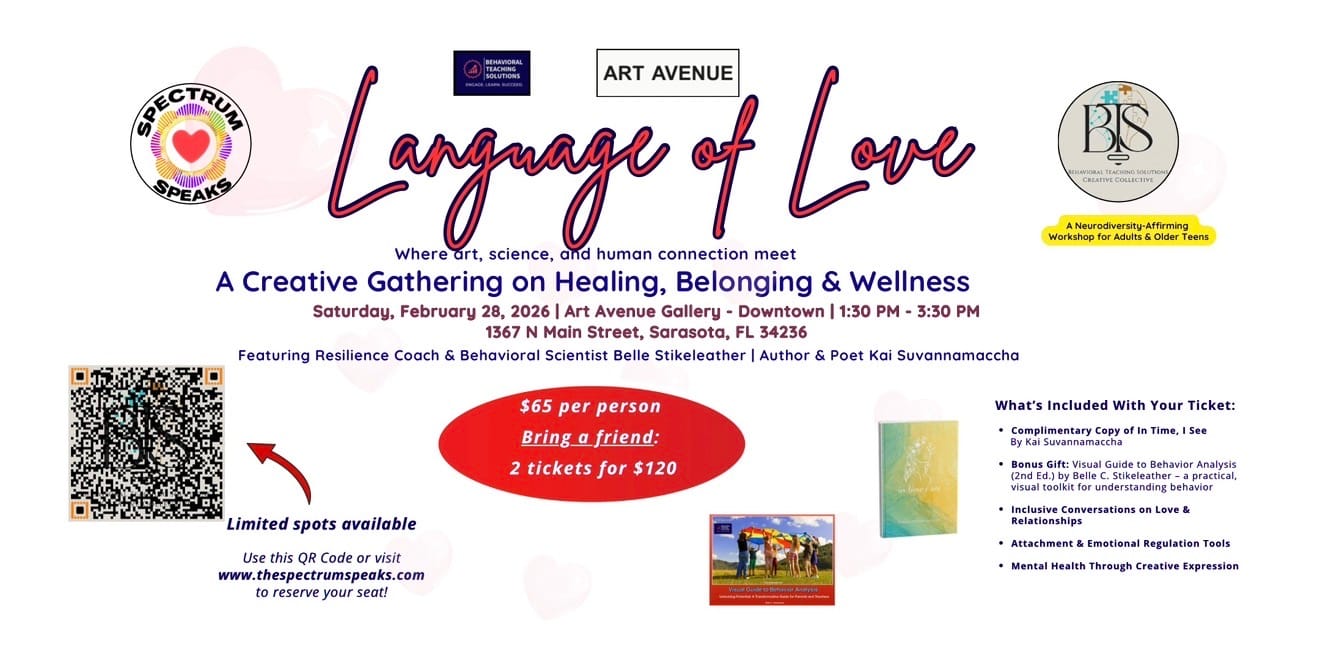 Language of Love is a neurodiversity-affirming creative event designed to explore healing, belonging, and authentic communication through both behavioral science and poetry.